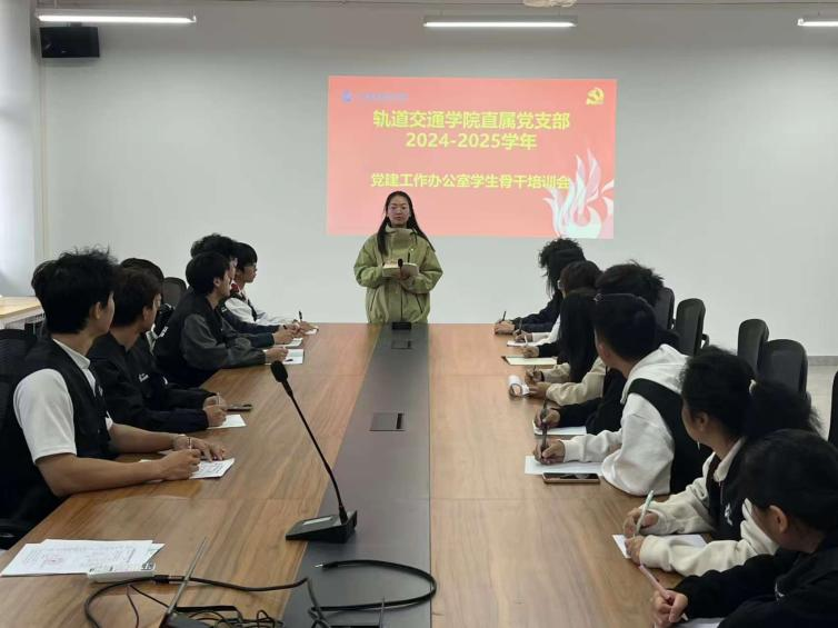开班仪式上,轨道交通学院副院长、直属党支部副书记乔琛致辞,深刻诠释了党建工作的深远意义与神圣使命,为干事们注入信仰力量、校准前行坐标。接下来的培训课程中,支部组织委员翟应佳就深度开掘“新时代学生党员的责任与担当”内涵,从理论精研到实例剖析,多维勾勒新时代党员的使命图谱,引领干事践行先锋模范,激发担当奋进的磅礴动能。
