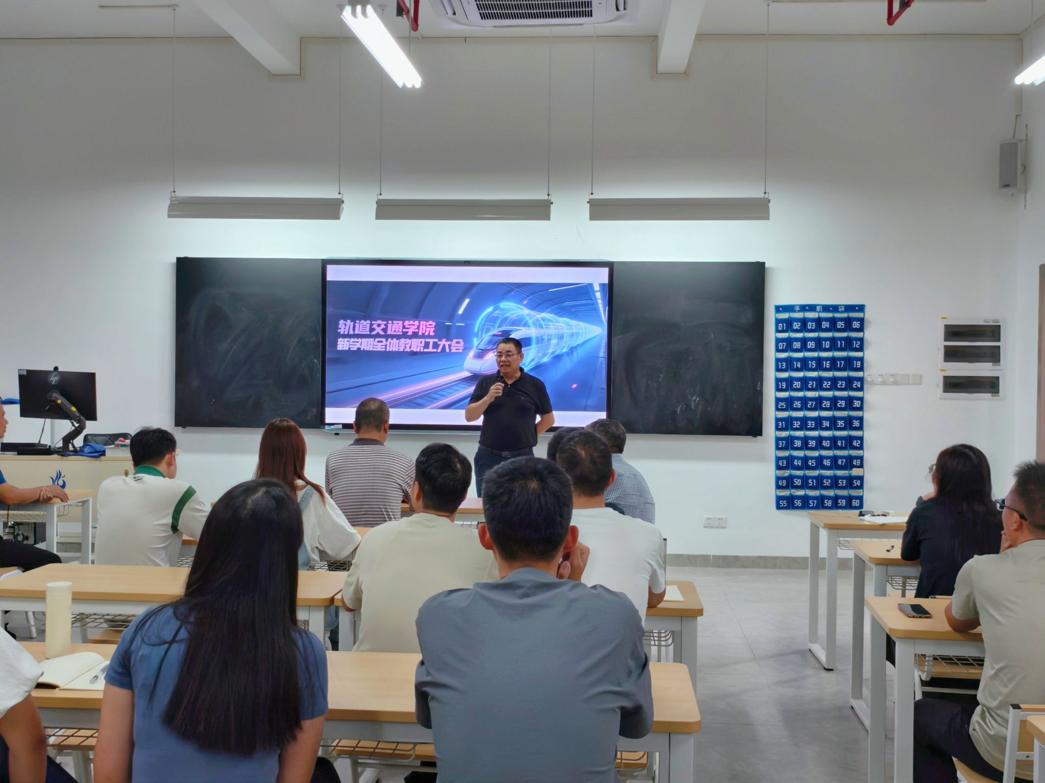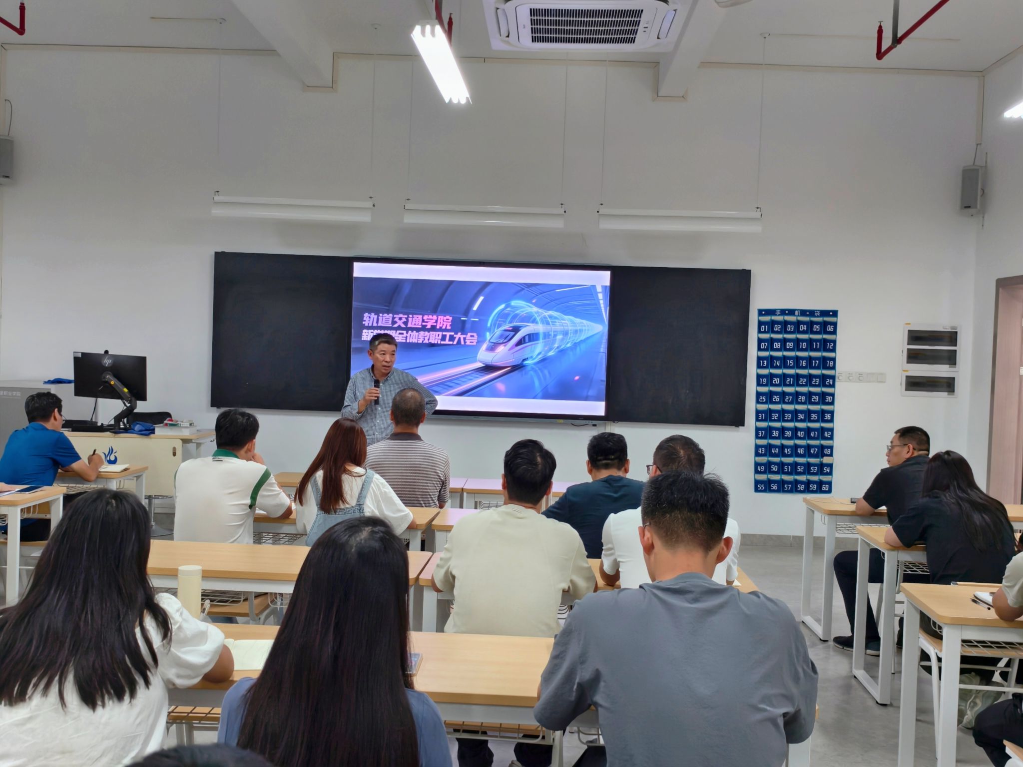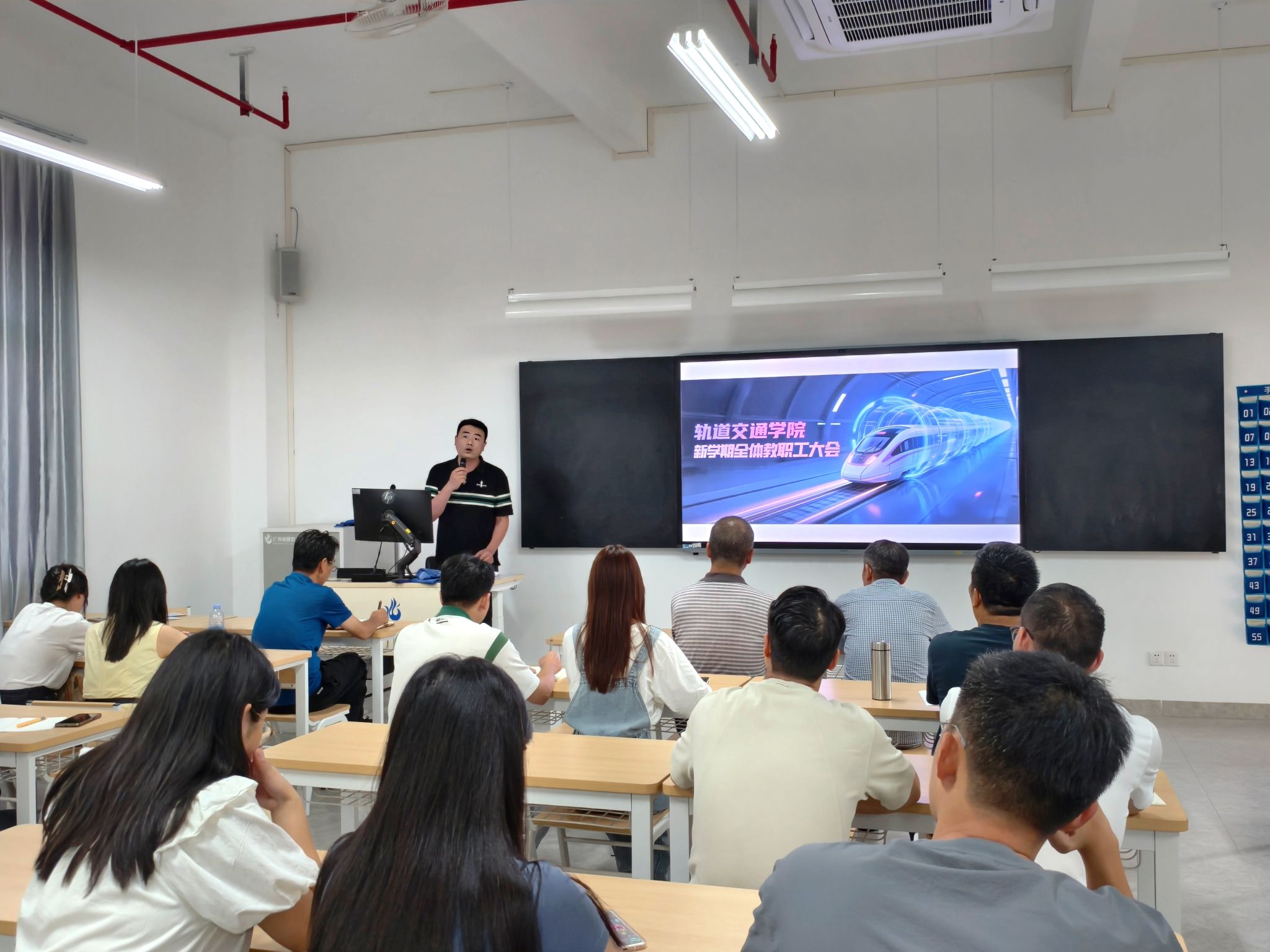 会议伊始,新任科研副院长李木权及六位新进教师依次上台作自我介绍。他们结合自身学术背景、研究方向与教学理念,表达了加入轨道交通学院的荣幸与期待,展现了积极融入团队、共促学院发展的信心与决心。