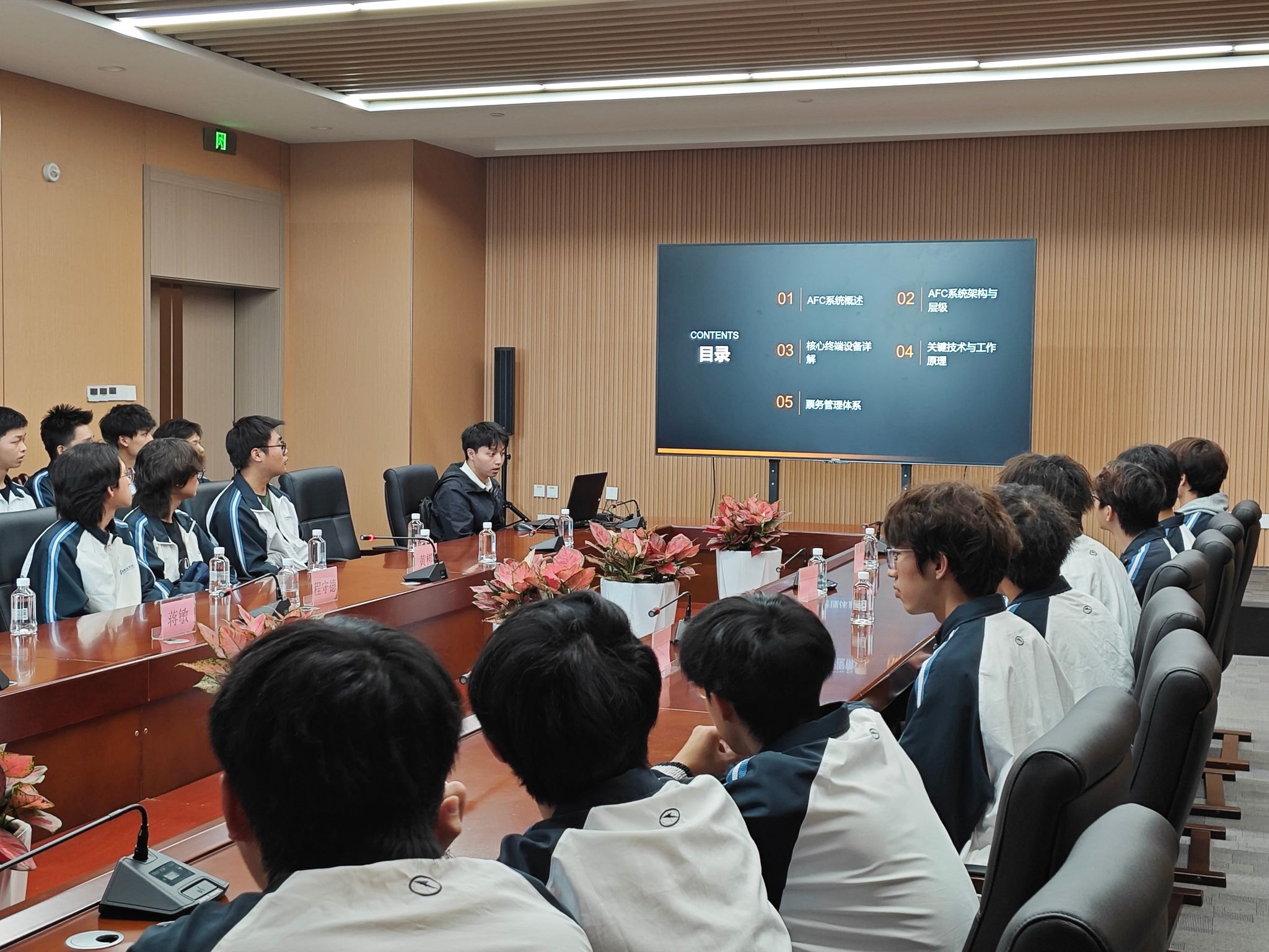 在专业技术讲解环节,运维技术工程师杨杰以轨道交通AFC系统(自动售检票系统)为核心,为同学们展开了生动详实的专业授课。结合广州地铁实际运营案例,详细阐释了系统售票、检票、计费、清分等核心功能,以及非接触式IC卡、二维码车票等介质的应用原理。讲解过程中,同学们围绕设备故障排查、系统升级维护等问题与工程师深入交流,现场学习氛围浓厚。