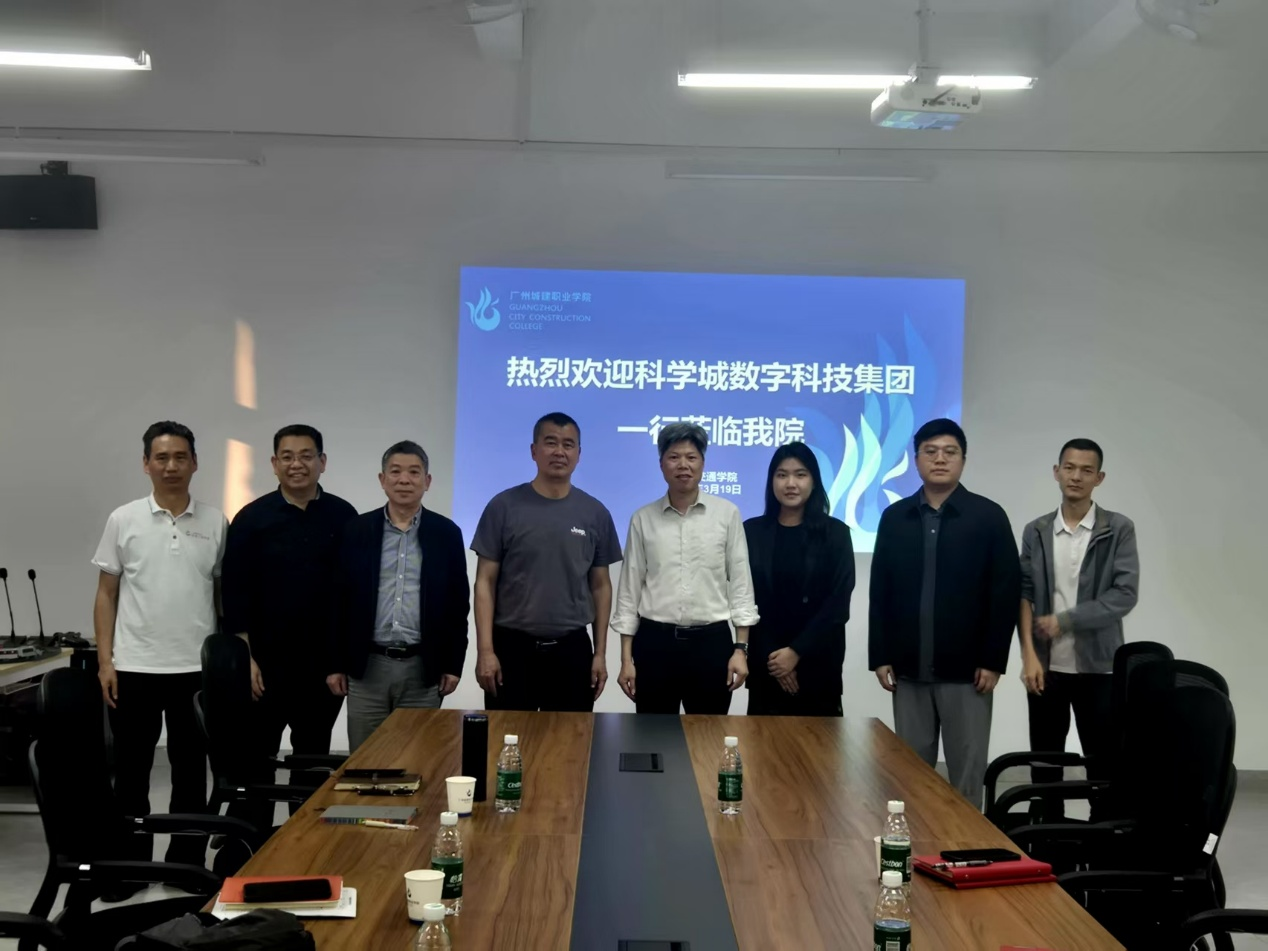 2026年3月19日,科学城(广州)数字科技集团有限公司赖国戈总经理一行到访我院,学院领导班子全体成员接待并参与座谈,双方围绕深化校企合作、推进产教融合展开深入交流。