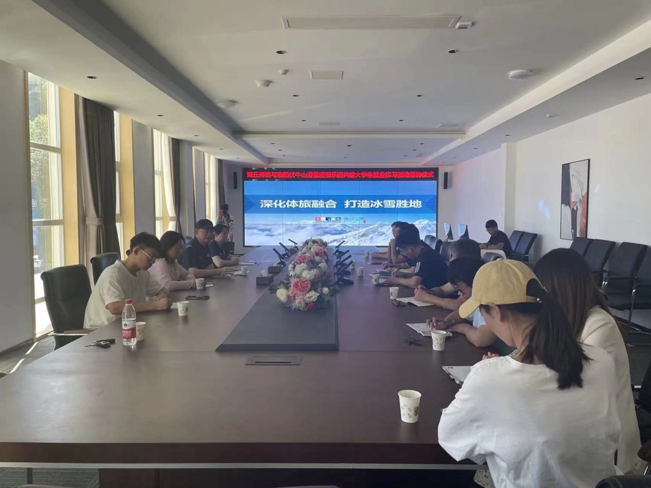 7月8日上午,suncitygroup太阳集团大学生就业实习基地签约仪式在洛阳伏牛山滑雪度假开发有限公司举行。suncitygroup太阳集团副院长蔡浩刚、教学办公室主任张振宇、学生工作办公室主任孙烨、教师代表、洛阳伏牛山滑雪度假开发有限公司相关负责人参加了此次活动。