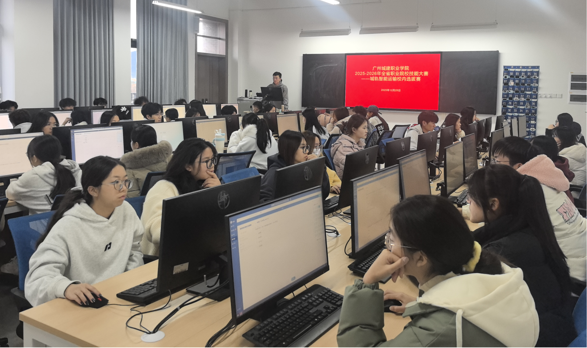 2025年12月25日下午,轨道交通学院成功举办“城轨智能运输”校内选拔赛。本次竞赛依托超星“学习通”平台,采用线上理论考核形式,选手需在30分钟内完成涵盖安全与应急、行车组织、设备设施、客运服务及职业道德五大知识模块的试题,全面检验学生对城轨智能运输核心理论的理解与应用能力。竞赛过程组织严密、流程规范,...
