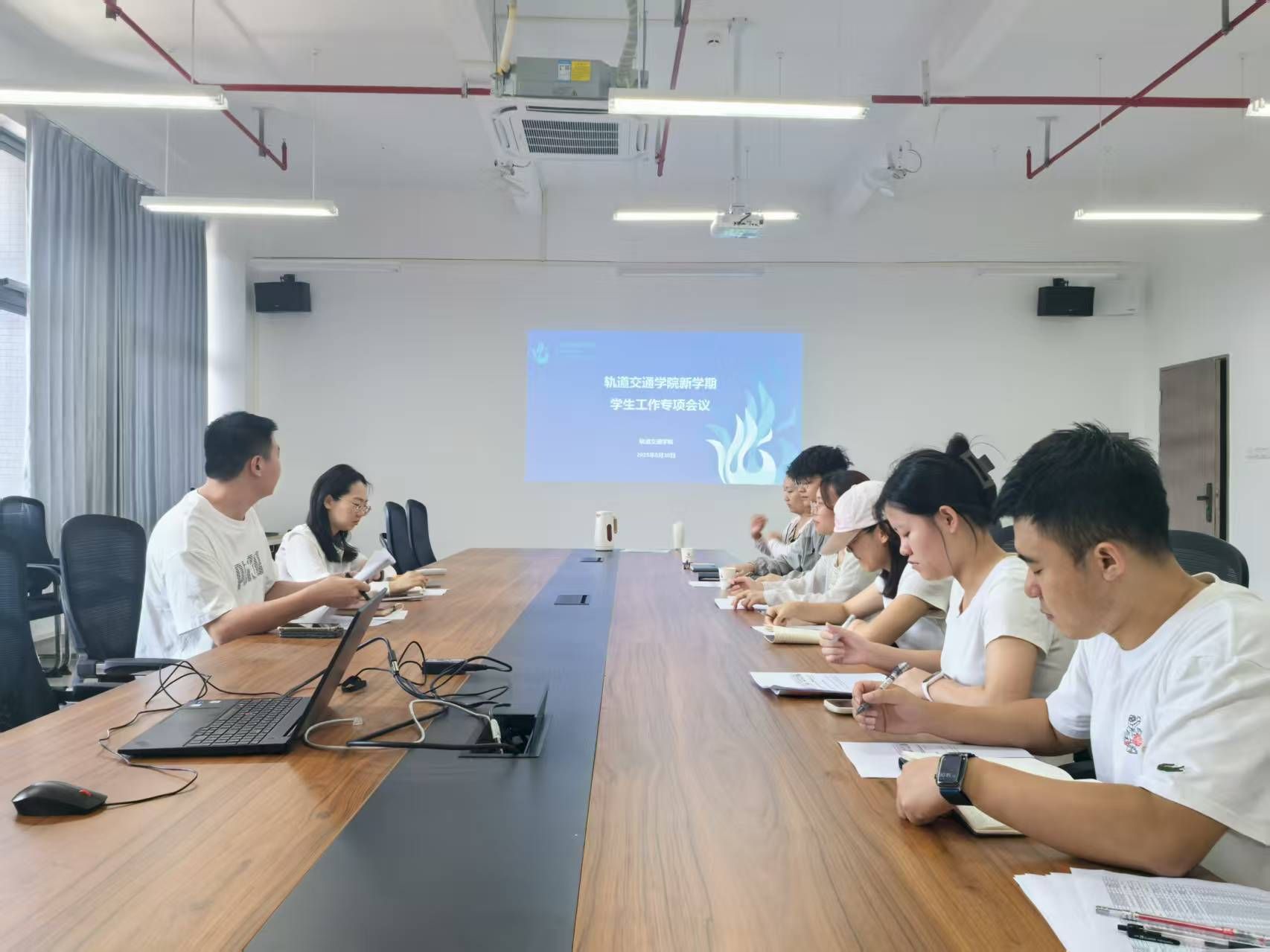 为确保学院2025年秋季学期学生工作平稳推进,8月30日下午,轨道交通学院于清远校区10栋701召开新学期学生工作会议,对新学期各项工作作出具体安排,会议由轨道交通学院直属党支部副书记、副院长乔琛主持,全体辅导员老师参会。乔琛副院长首先传达了新学期学校各项工作部署和安排,指出新学期工作任务繁重,全体辅导员老...
